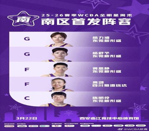 除此之外,南區(qū)首發(fā)有多達(dá)4人來自廣東女籃,除了楊力維與楊舒予之外,還有黃思靜與陳明伶,其中陳明伶目前也是在征戰(zhàn)世預(yù)賽,剩余一位首發(fā)是四川女籃的前國手高頌。