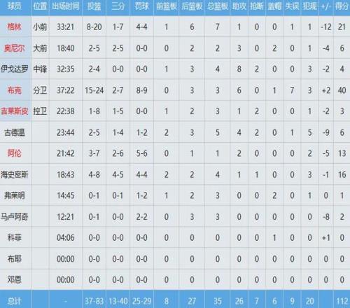 該場比賽亞歷山大罰球8中7貢獻(xiàn)35分6板9助,杰倫布朗罰球14中13砍下34分6板7助。