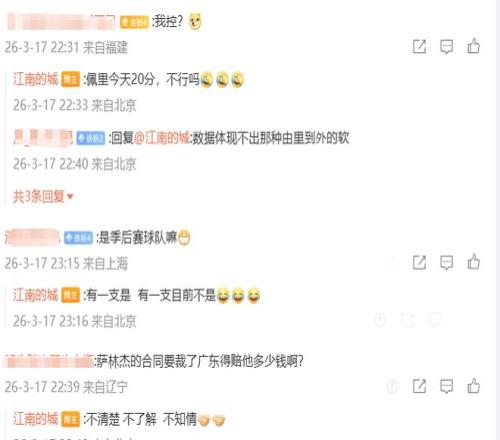 目前還不能確定哪些球隊接觸了威廉姆斯,但根據(jù)動態(tài)下方“江南的城”給出一些回復(fù),廣東隊很可能會是威廉姆斯的潛在下家(據(jù)悉,威廉姆斯已經(jīng)到了香港)。
