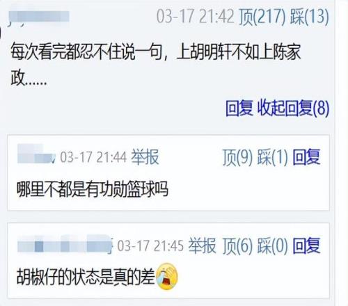 看到胡明軒這樣的表現,再對比陳家政本場比賽的遭遇,也就不怪賽后有球迷替陳家政打抱不平了:每次看完都忍不住說一句,上胡明軒不如上陳家政。
