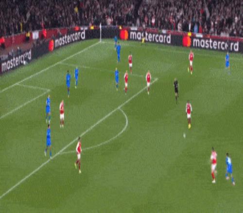 第36分鐘,阿森納中路連續(xù)頭球爭頂,特羅薩德向前做球,弧頂附近埃澤接球轉(zhuǎn)身直接爆射轟出超級世界波!阿森納1-0領(lǐng)先。