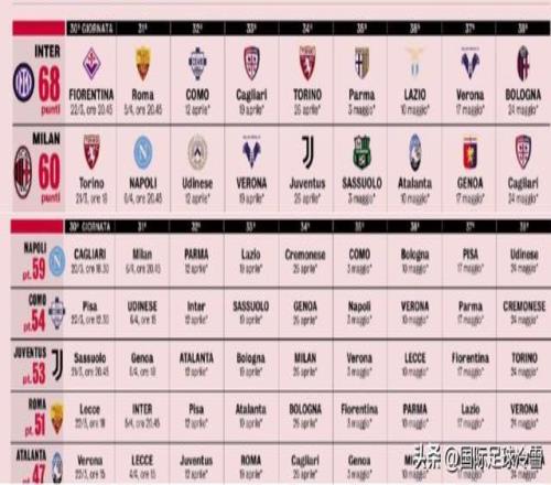 相對而言,國米最后階段要對陣佛羅倫薩等拼保級的球隊,要對上羅馬、科莫等為歐冠資格玩命的球隊。AC米蘭則要同那不勒斯、尤文圖斯、亞特蘭大等多支爭奪歐戰(zhàn)資格的對手捉對廝殺。