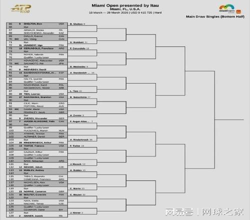 我們再來關(guān)注ATP/WTA1000邁阿密站的最新消息。北京時間昨晚,ATP1000邁阿密大師賽公布了單打正賽簽表。捷克新星門希克以衛(wèi)冕冠軍身份出戰(zhàn),世界前十當(dāng)中除了德約科維奇因傷退賽之外,其他人悉數(shù)參賽。