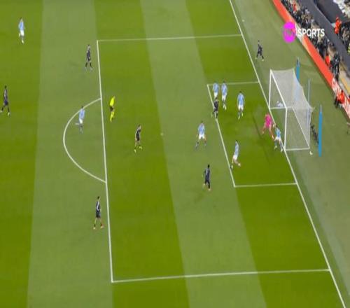 助理裁判舉旗示意越位,但當(dāng)時(shí)不清楚判的是維尼修斯(從巴爾韋德傳球時(shí)看,他似乎并未越位)還是卜拉欣——巴爾韋德最初傳球時(shí),他處在曼城防線身后。