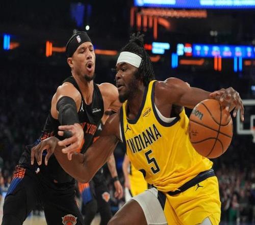 尼克斯過去3場連贏爵士、步行者與勇士收獲3連勝,步行者過去13場遭遇13連敗,本賽季前3次交鋒尼克斯2勝1負(fù)處于上風(fēng)。本場尼克斯缺少布倫森與麥克布萊德,步行者缺少西亞卡姆、內(nèi)姆哈德、哈利伯頓。雙方首節(jié)早早開啟對(duì)攻模式,兩隊(duì)首節(jié)均是單節(jié)得分30+,尼克斯更是完成本場唯一一次單節(jié)得分35+表現(xiàn)。尼克斯持續(xù)保持微弱領(lǐng)先優(yōu)勢,首節(jié)結(jié)束尼克斯38-34領(lǐng)先步行者。