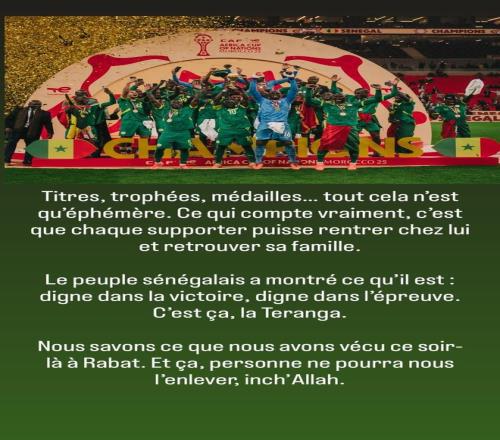 在塞內(nèi)加爾在非洲杯決賽被判0-3后,塞內(nèi)加爾隊(duì)長(zhǎng)蓋伊在社交媒體回應(yīng)了此事。