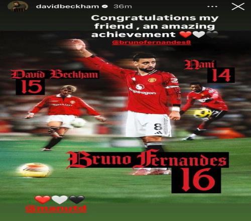 貝克漢姆恭喜B費(fèi)打破自己的助攻記錄:恭喜你我的朋友,這是一項(xiàng)很棒的成就
