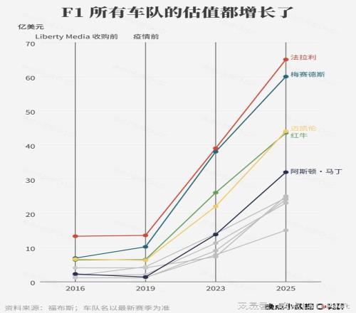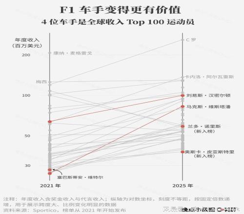 自 2017 年收購(gòu) F1 集團(tuán)以來(lái), 美國(guó)公司 Liberty Media 讓 F1 營(yíng)收翻了一倍。車(chē)隊(duì)、車(chē)手連帶升值,法拉利、梅賽德斯、邁凱倫、紅牛四支大車(chē)隊(duì)的估值增長(zhǎng) 6 倍以上,更多車(chē)手躋身全球收入最高運(yùn)動(dòng)員榜單。新增年輕粉絲中,女性占比超過(guò)男性,LVMH 等奢侈品集團(tuán)也開(kāi)始與 F1 合作。