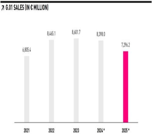 2025財年,彪馬全年銷售額約為73億歐元,按匯率調(diào)整計(jì)算同比下降約8%。在全球運(yùn)動用品行業(yè)仍處于增長周期的背景下,這樣的跌幅本身就顯得不尋常。更嚴(yán)重的是盈利端的迅速惡化。