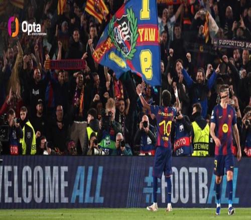 歐冠單輪淘汰賽進2粒點球,亞馬爾成為繼梅西之后巴薩第二人