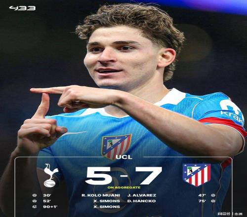 馬競客場2-3負(fù)于熱刺,但仍以總比分7-5晉級歐冠八強。盧克曼進球因越位被吹掉,穆阿尼頭球破門打破僵局,盧克曼反擊助攻阿爾瓦雷斯破門,哈維-西蒙斯回敬遠(yuǎn)射,漢茨科頭球再度扳平比分,哈維-西蒙斯在比賽尾聲階段造點并主罰命中。