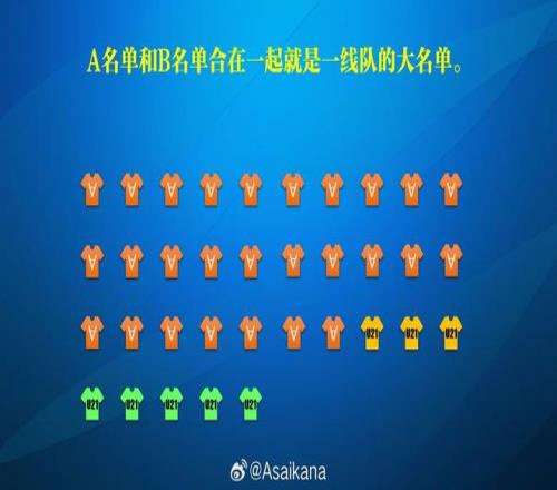 A名單:球隊的主體報名名單,最少需報名18人。球隊報名總?cè)藬?shù)的下限即為18人,因此A名單是球隊報名的基礎(chǔ)。