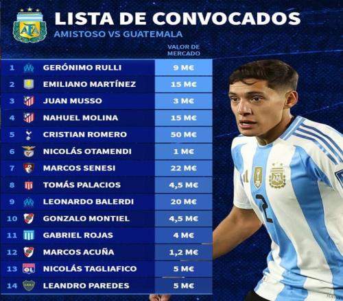 阿根廷國家隊(duì)新一期大名單德轉(zhuǎn)身價(jià)榜: