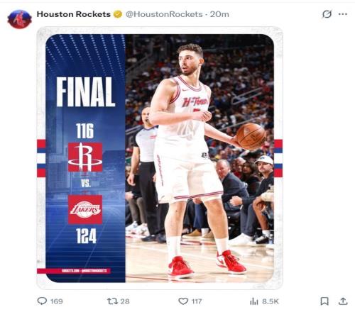 北京時間3月19日,火箭116-124不敵湖人吞下二連敗,火箭掉到西部第五。申京的復(fù)出的確讓火箭的進攻流暢了不少,他在第三節(jié)的5次助攻是火箭反超的關(guān)鍵,只可惜在末節(jié)決勝時刻出現(xiàn)了低級失誤,全場比賽申京27分10助攻4籃板也算盡力了,他登上火箭海報。