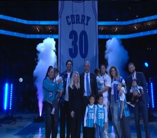 如今黃蜂主場為戴爾-庫里舉辦30號球衣退役儀式,庫里全家人到場見證父親的榮耀時(shí)刻,見證30號球衣冉冉升空,并且全家一起合影留念。