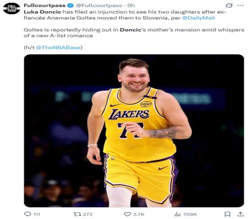 賽前又傳來了東契奇的噩耗,他已經(jīng)申請強制執(zhí)行令來探望他的兩個女兒,因為他的未婚妻戈爾特斯將她們帶回了斯洛文尼亞,目前戈爾特斯正躲藏在東契奇母親的豪宅里,同時有傳言稱他與某位明星緋聞纏身。(悲傷體育生愈發(fā)的凄涼)