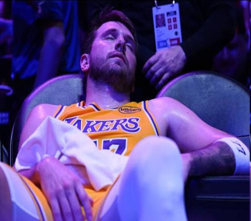 在本場(chǎng)比賽場(chǎng)邊,東契奇癱坐在椅子上說道:“我太XX累了!”