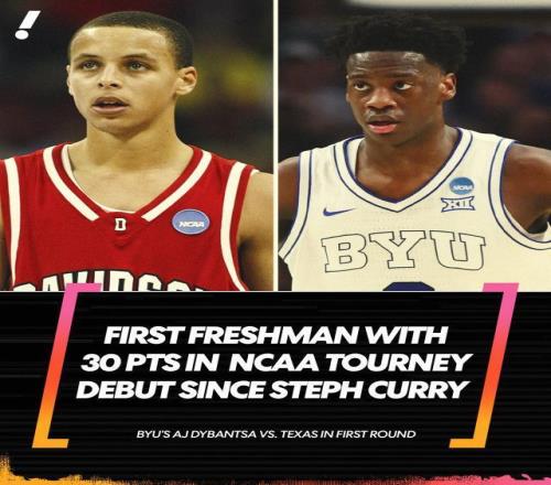 根據(jù)統(tǒng)計(jì),迪班薩是在2007年的庫(kù)里之后,首位能在瘋?cè)仔阒械玫?0+的大一新生。庫(kù)里當(dāng)年“瘋?cè)笔仔戕Z下了30分。