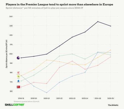 還有比賽風(fēng)格。比如,英超球隊(duì)每60分鐘活球時(shí)間的沖刺次數(shù)為230次,其余四大聯(lián)賽都在200次上下。這些因素不可能一點(diǎn)影響也沒(méi)有。
