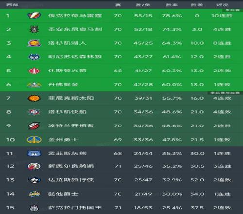 北京時間3月20日,今日的NBA常規(guī)賽結(jié)束了所有比賽,我們看看西部的最新積分榜,主要的信息是:馬刺101-100絕殺太陽,湖人134-126熱火豪取8連勝,快船99-105鵜鶘,國王118-139慘敗76人,爵士128-96大勝雄鹿!