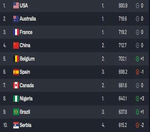 將中國女籃的積分升至712.7分,超越了比利時女籃。