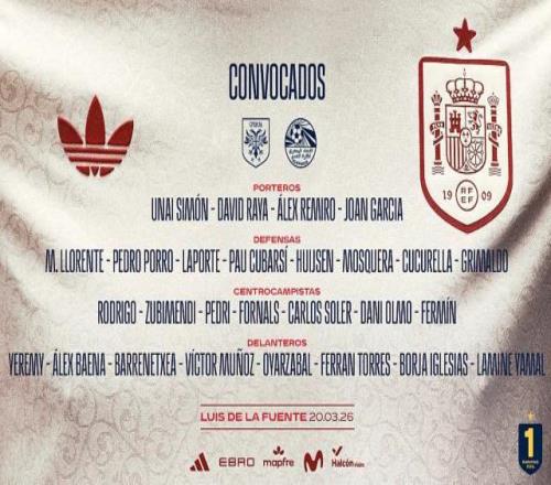本周五,西班牙隊公布新一期大名單,亞馬爾、羅德里、佩德里、蘇維門迪在列,霍安·加西亞入選。3月的國際比賽周,西班牙將先后與塞爾維亞、埃及進行友誼賽。