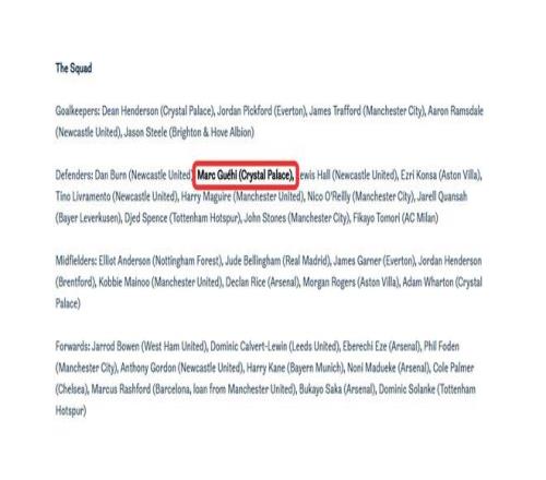 當(dāng)?shù)貢r(shí)間周五上午,主帥托馬斯-圖赫爾公布了對(duì)陣日本和烏拉圭兩場(chǎng)熱身賽的35人大名單。然而,在官方名單中,25歲的格伊仍被標(biāo)注為效力于水晶宮的球員。