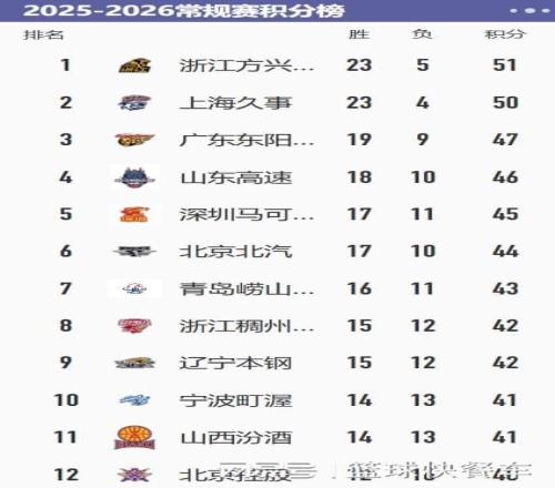 CBA積分榜最新排名!廣廈反超上海奪回第1:廣東爆冷輸?shù)箶?shù)第2
