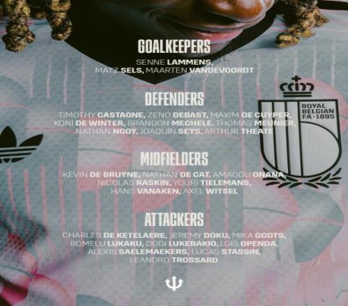 比利時(shí)隊(duì)名單:德布勞內(nèi)、盧卡庫、多庫、奧蓬達(dá)、特羅薩德在列