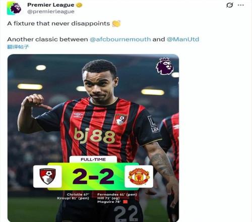 英超第31輪,曼聯(lián)客場2-2戰(zhàn)平伯恩茅斯。一場本該拿下的比賽,因?yàn)閮纱侮P(guān)鍵判罰的,成了一輪關(guān)于“公正”的激烈爭論。賽后,曼聯(lián)主帥卡里克直言判罰“荒唐”,而球迷則在英超官方社媒下掀起抗議浪潮。不過,官方卻給出了其他的回答。