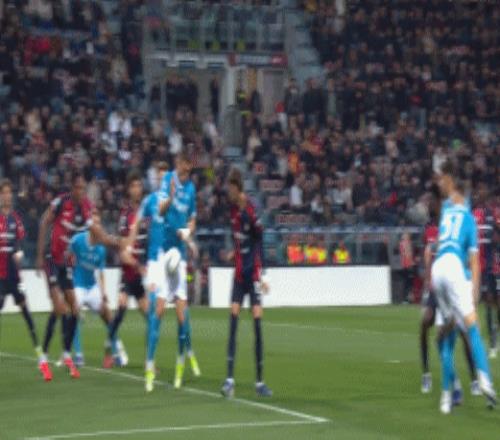 第5分鐘,那不勒斯獲得禁區(qū)右側(cè)位置很好的任意球機(jī)會(huì),波利塔諾操刀主罰左腳大力兜射,皮球繞過人墻直奔球門而去,門將卡普里萊穩(wěn)穩(wěn)將球擊出。第15分鐘,那不勒斯左側(cè)角球機(jī)會(huì),又是戰(zhàn)術(shù)配合,連續(xù)轉(zhuǎn)移到右側(cè),波利塔諾禁區(qū)內(nèi)近距離大力掃射,卡普里萊奮力將球撲出。