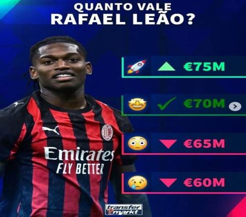 德國(guó)轉(zhuǎn)會(huì)市場(chǎng)即將更新意甲球員身價(jià),官方社媒預(yù)熱了米蘭球員萊奧的身價(jià)調(diào)整選項(xiàng)數(shù)字。