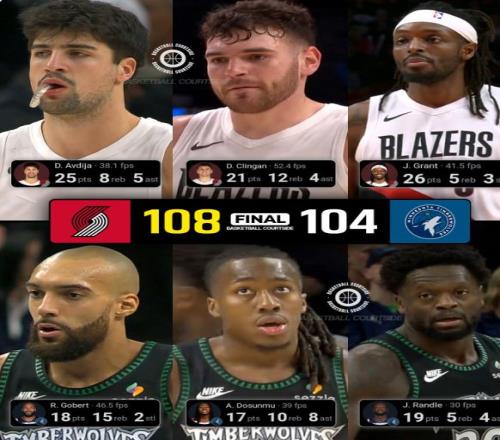 迪文琴佐持球突破面對克林根防守強行得分失敗,之后克林根和戈貝爾兩人巔峰搶板對決。戈貝爾在位置更好下想補籃但被克林根干擾,最終球被開拓者的格蘭特拿下來...