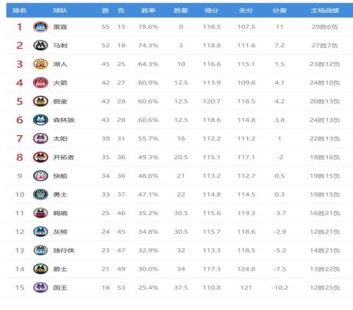 今日比賽后西部火箭、掘金、森林狼排名互換,快船、開拓者排名互換,鵜鶘、灰熊排名互換。