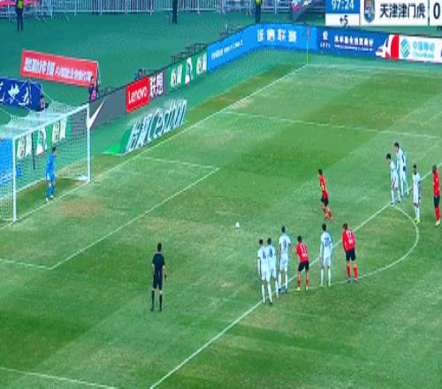 補(bǔ)時(shí)第8分鐘,邦本宜裕主罰點(diǎn)球時(shí)踢出勺子點(diǎn)球,將球送入球網(wǎng),打入了中超處子球。