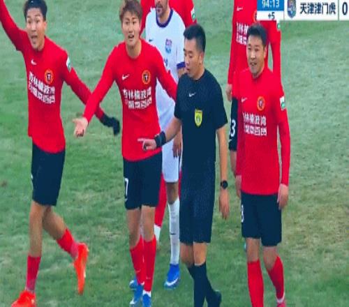 從慢鏡頭來(lái)看,王獻(xiàn)鈞長(zhǎng)時(shí)間拉扯田玉達(dá)球衣,在后者進(jìn)入禁區(qū)之后仍然沒(méi)有松手?;乜绰R頭之后,主裁判判罰點(diǎn)球并且向王獻(xiàn)鈞出示紅牌。