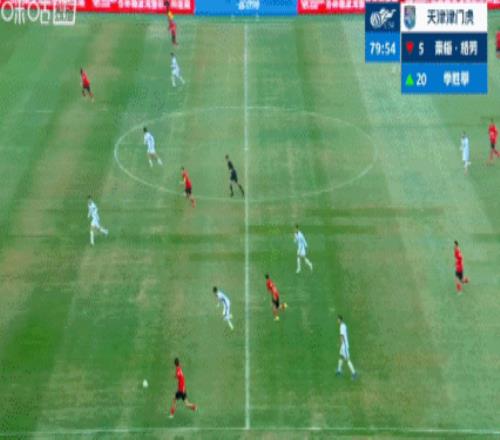 第72分鐘,津門虎錯(cuò)失良機(jī),孫銘謙傳中,隊(duì)友兩點(diǎn)包抄都沒打上。