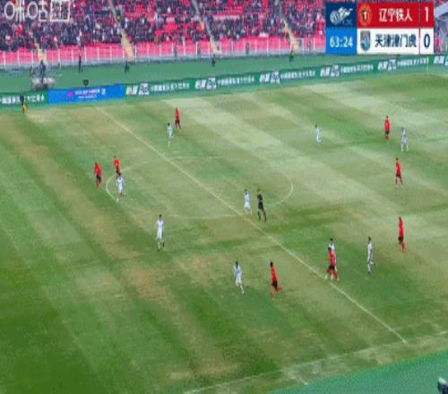 第23分鐘,遼寧鐵人終于打破僵局,姆本扎接到隊(duì)友傳中后兩連擊破門,這是遼寧鐵人隊(duì)史中超首球。