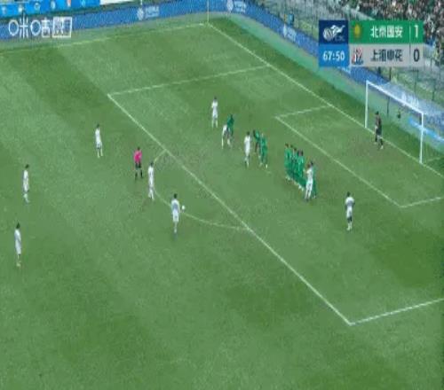 下半場(chǎng),國(guó)安的阿不都海米提弧頂位置上搶踢倒米內(nèi)羅吃到黃牌,并送給申花一個(gè)位置絕佳的任意球。陳晉一任意球直接打進(jìn)球門(mén)死角扳平比分。