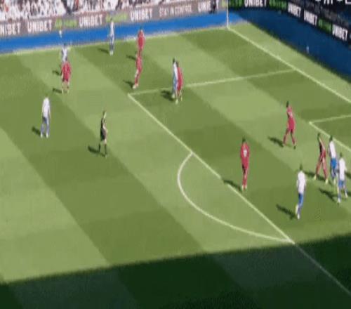 第14分鐘,布萊頓進(jìn)球了。他們一次前場任意球的精妙傳遞:維爾貝克高高躍起將球頂進(jìn)。1-0!