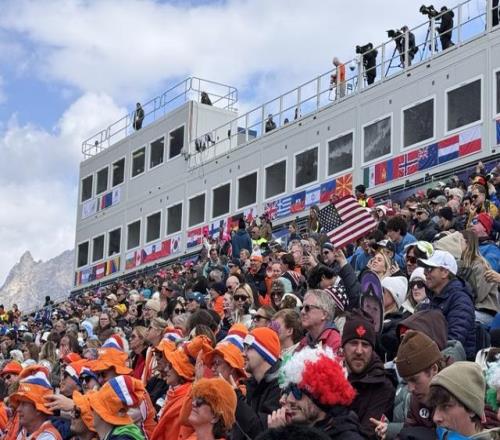 意大利科爾蒂納托法內(nèi)高山滑雪中心觀眾席《華夏時(shí)報(bào)》記者石文君/攝