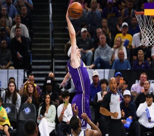后半段東契奇單打,薩格斯聯(lián)合比塔澤守住領(lǐng)先,雙方陷入拉鋸戰(zhàn)。節(jié)末薩格斯命中三分球,里夫斯連續(xù)突破上籃回應(yīng),半場湖人62-65落后魔術(shù)。進入第三節(jié),里夫斯和杰旺卡特對轟三分,艾頓和東契奇輪流罰球,老詹也終于找到手感,反擊飛身上籃+反擊攻框造殺傷。比較有趣的是,魔術(shù)都打完一個進攻回合了,老詹還在前場沒回來。魔術(shù)在班凱羅和薩格斯帶領(lǐng)下,也往湖人籃下沖,雙方比分交替上升。節(jié)末杰旺卡特三分球打破平衡,三節(jié)結(jié)束時,湖人82-87落后魔術(shù)。決戰(zhàn)第四節(jié),海斯連續(xù)吃餅,里夫斯連拿4分,湖人逐漸追上。