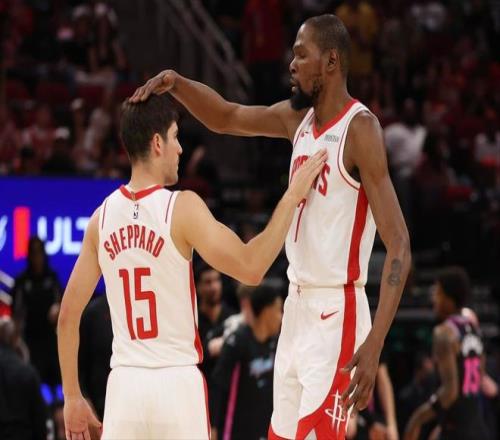 然而,熱火并不愿就此淪為杜蘭特生涯夜的背景板,盡管一口氣讓了維金斯、鮑威爾、小海梅-哈克斯,在烏度卡的“配合”下,南海岸軍團還是給火箭帶來了極大的麻煩。熱火在末節(jié)一度領(lǐng)先兩位數(shù),直到烏度卡放手一搏,換上謝潑德+霍老三的雙后衛(wèi)陣容后,如雨點一般的三分球才讓火箭重新掌握了主動權(quán)。有意思的是,當大家都以為火箭在還剩三分鐘領(lǐng)先7分,已然勝券在握時,他們又開始了整活。