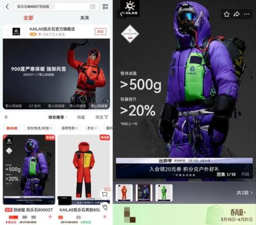 例如凱樂石8000GT羽絨服,為探險珠峰設(shè)計,能扛住-40℃極寒、280km/h暴風,并且耐磨、防刺。有這類產(chǎn)品需求的人無疑少之又少,而負責人表示,“專業(yè)級產(chǎn)品線和專業(yè)護具,只有京東能賣出去?!边@也說明了,用戶契合度高背后,不僅指普通愛好者或戶外老炮,也涵蓋了更專業(yè)、更小眾的人群。