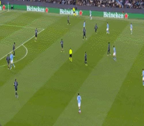 而且在上半場開局階段,曼城同樣打得很有細節(jié)。在貝爾納多席爾瓦被紅牌罰下前,曼城的肋部小球配合,連續(xù)制造出了射門機會。