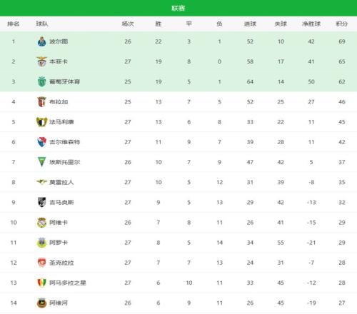 拿下此役后,穆里紀(jì)奧在葡超豪取27輪不敗,成為葡超唯一一支保持不敗的球隊(duì),同樣也是歐洲足壇唯一一支不敗之師!但是此前的8場(chǎng)平局,本菲卡只能成為爭(zhēng)冠的追趕者,目前球隊(duì)積分達(dá)到65分,成功反超葡萄牙體育升至第二位(少賽2場(chǎng)),與榜首波爾圖的差距縮小至4分。雖然波爾圖仍少賽一場(chǎng),但早已經(jīng)沒(méi)有賽季中前期那樣巨大的分差,一兩場(chǎng)爆冷,隨時(shí)都有可能讓出榜首!