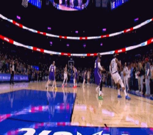 最后2秒,湖人前場發(fā)球,老詹直插籃下一下就帶走兩人,就在這一瞬間,肯納德從右側(cè)45度角悄咪咪溜到左側(cè)45角,聰明哥心領(lǐng)神會,球長了眼睛一樣飛到他的手里。