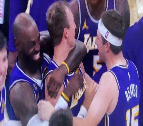 安利中心直接安靜如雞,湖人全隊瘋了一樣沖向肯納德。老詹像個沒見過世面的41歲小孩子,緊緊抱住了肯納德,全隊激情慶祝——這畫面,懂的都懂,懂的都懂?。?/p>