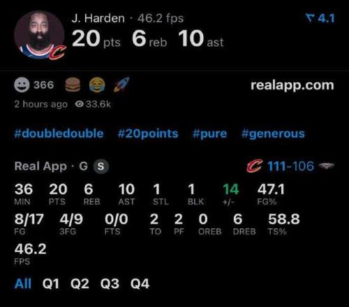 對(duì)了,哈登在帶領(lǐng)騎士客場(chǎng)111-106戰(zhàn)勝鵜鶘比賽中,可是以0罰球得到的20分外加10助,正負(fù)值+14冠絕全場(chǎng),人家再次證明了只靠運(yùn)動(dòng)戰(zhàn)得分照樣能夠收割比賽。