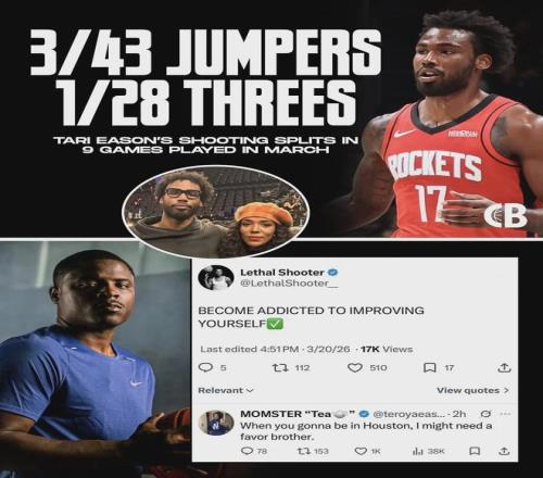 如今伊森賽季三分命中率已經(jīng)跌至37.2%,僅排聯(lián)盟第78位?;鸺€剩13場常規(guī)賽,按照這個趨勢,伊森的三分命中率還要繼續(xù)下滑。伊森的媽媽在網(wǎng)上給一個知名投籃訓(xùn)練師留言:“你什么時候來休斯頓?我可能需要你幫個忙。”